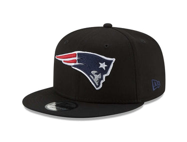 El Snapback New England Patriots Basic 9FIFTY presenta una confección integral en negro con un logotipo a color bordado en los paneles frontales y un cierre ajustable a presión en la parte trasera.